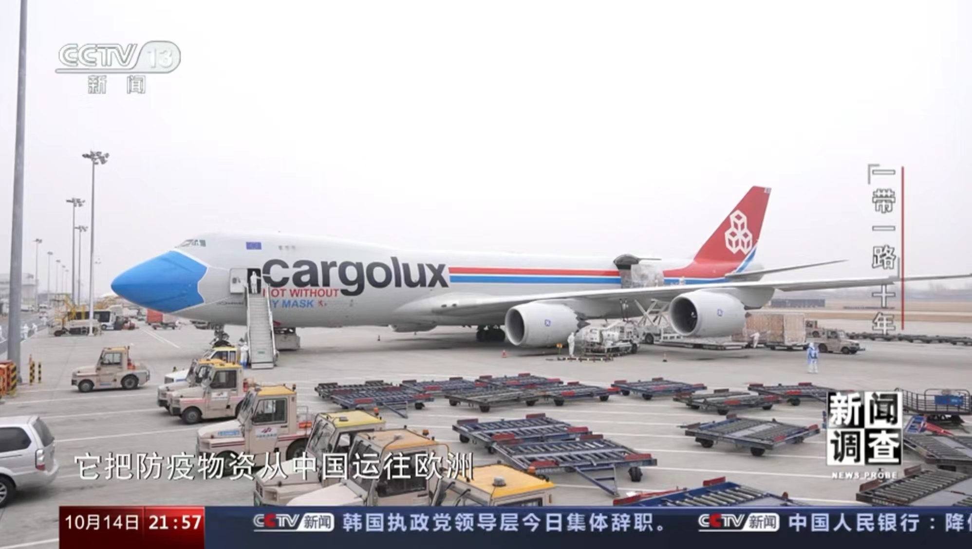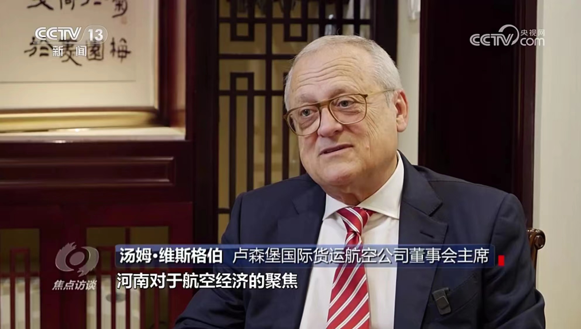隨后,央視《新聞?wù){(diào)查》于10月14日播出“一帶一路十年 雙向奔赴 絲路同行”。報(bào)道再次把鏡頭給到河南,同樣選用了鄭盧“空中絲綢之路”案例。理查德·福森在節(jié)目中對(duì)雙方的合作成績(jī)給予肯定,他介紹說,通過這條鄭州到盧森堡的航線,盧森堡貨航能夠輻射整個(gè)歐洲,可以把貨物送到歐洲的125個(gè)站點(diǎn);同時(shí)也可以從新鄭國際機(jī)場(chǎng)飛往美國芝加哥和其他的分撥中心,從那里通過貨車陸運(yùn)至少可以去往美國的200多個(gè)站點(diǎn)。而湯姆·維斯格伯認(rèn)為,如果沒有河南,盧森堡貨航很難為客戶提供完美的方案。報(bào)道回顧了豫盧攜手抗疫、共同推動(dòng)可持續(xù)航空燃料加注和文化融通等事例,并認(rèn)為,從2013年河南航投與盧森堡貨航合作以來,雙方攜手同行,帶來的不僅僅是利潤(rùn),還有對(duì)彼此堅(jiān)定的信任。
