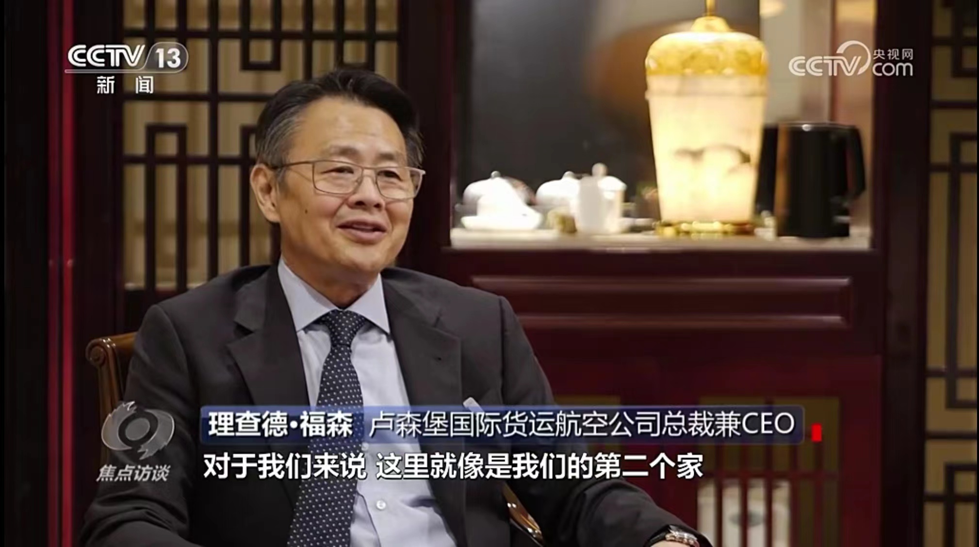 10月11日,央視《焦點(diǎn)訪談》播發(fā)系列報(bào)道“絲路同行”第一集——雙向奔赴的繁榮之路。報(bào)道中說,“一帶一路”倡議的提出,讓河南明確了突破區(qū)位限制、向藍(lán)天要效益的開放思路。通過采訪河南航投集團(tuán)黨委書記、董事長(zhǎng)張明超和盧森堡貨航董事會(huì)主席湯姆·維斯格伯、總裁兼CEO理查德·福森,報(bào)道回顧了鄭盧“空中絲綢之路”十年探索實(shí)踐和豫盧之間的友好情誼。節(jié)目評(píng)論道:“(河南航投與盧森堡貨航)之間早已超越了生意伙伴這一簡(jiǎn)單的關(guān)系,多年的合作讓鄭州與盧森堡兩個(gè)航空樞紐之間的互聯(lián)互通真正實(shí)現(xiàn)了彼此雙方互利共贏和美美與共。這一切都在詮釋著‘一帶一路’倡議的核心要義。”