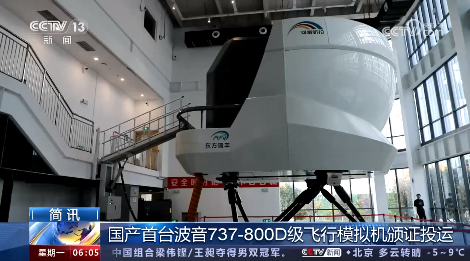 【央視朝聞天下】國產(chǎn)首臺波音737-800D級飛行模擬機頒證投運