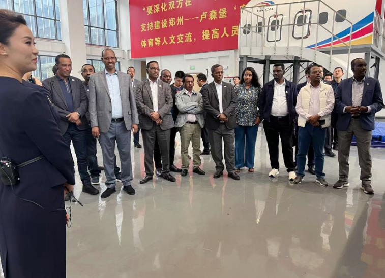 會(huì)談前,埃塞俄比亞繁榮黨副主席兼總書記阿登·法拉赫·易卜拉欣(Adem Farah Ibrahim)率領(lǐng)高級(jí)干部考察團(tuán)到河南航投航空培訓(xùn)中心參觀??疾靾F(tuán)高度評(píng)價(jià)鄭盧“空中絲綢之路”建設(shè)成果,對(duì)中豫航空集團(tuán)的制造和研發(fā)能力表示肯定,并表達(dá)了對(duì)中豫航空集團(tuán)和埃塞俄比亞航空未來合作的信心。