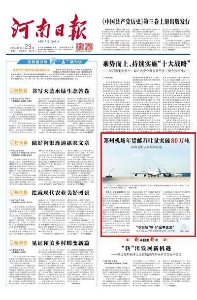 2018年,省政府、中國民航局聯(lián)合發(fā)布《鄭州國際航空貨運樞紐戰(zhàn)略規(guī)劃》,明確了鄭州機場國際航空貨運樞紐的戰(zhàn)略定位。在“空中絲路”的引領帶動下,鄭州機場國際貨郵吞吐量已連續(xù)多年位居全國第五,外向型特征明顯。今年截至12月20日,鄭州機場國際貨郵吞吐量完成45.6萬噸,占全部貨量的57.2%,同比增長22.1%。