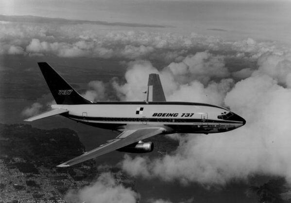圖:1967年4月9日,第一架波音737-100飛機(jī)首飛。圖片來(lái)自波音