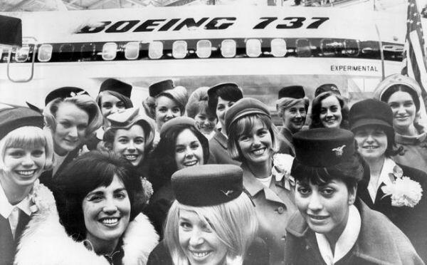 圖:1967年1月,17家已經(jīng)訂購(gòu)了737飛機(jī)的航空公司空姐在第一架737飛機(jī)前合影。圖片來(lái)自美聯(lián)社