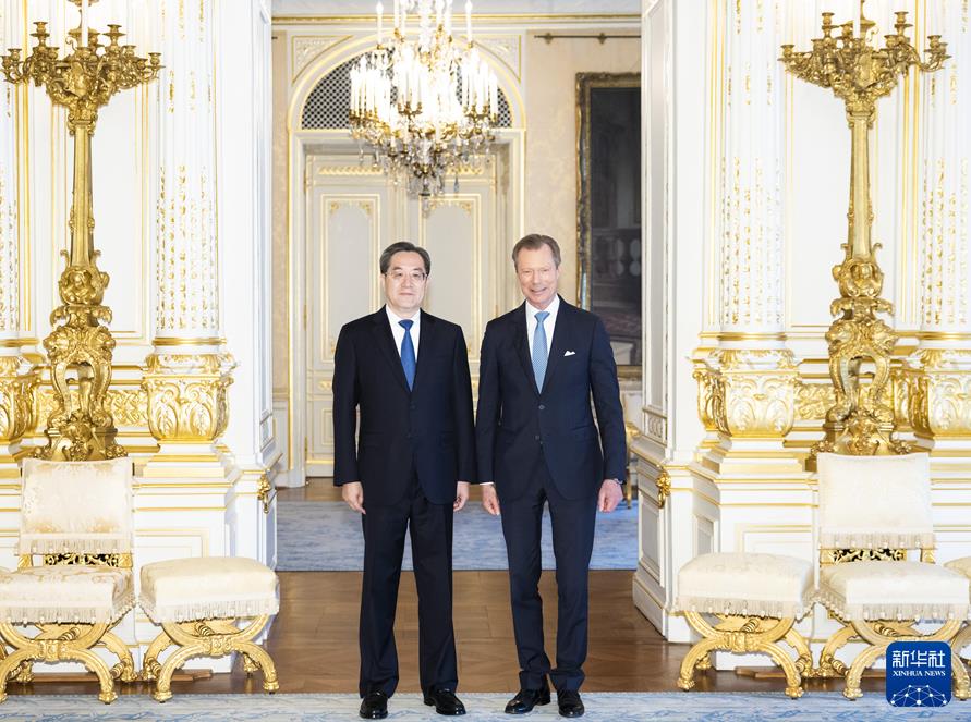 6月20日至21日,中共中央政治局常委、國(guó)務(wù)院副總理丁薛祥訪問(wèn)盧森堡,分別會(huì)見(jiàn)盧森堡大公亨利、國(guó)民議會(huì)議長(zhǎng)維斯勒、首相弗里登、副首相貝泰爾,出席第二屆鄭州-盧森堡“空中絲綢之路”國(guó)際合作論壇并致辭。這是6月20日,丁薛祥會(huì)見(jiàn)盧森堡大公亨利。新華社記者 黃敬文 攝