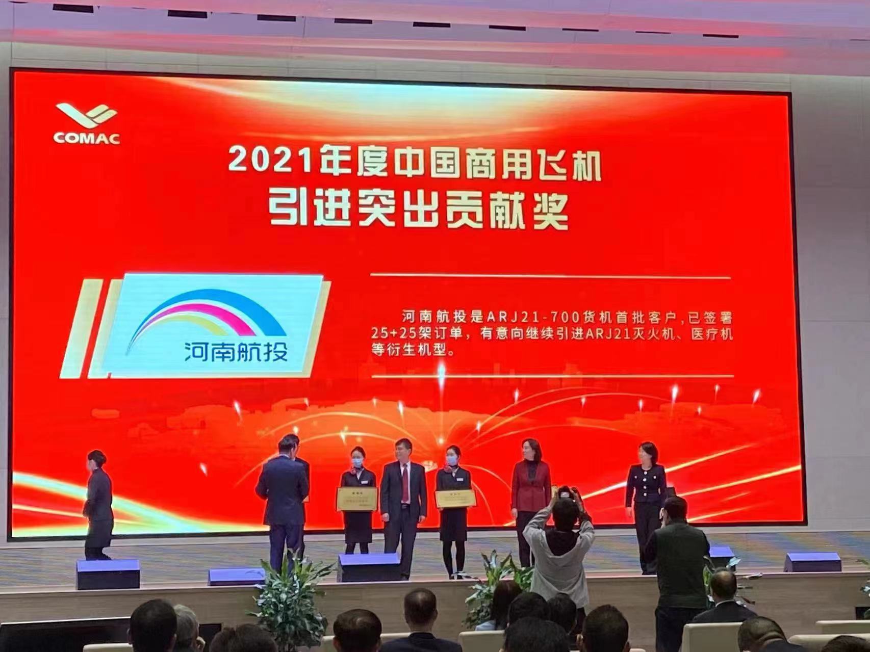 10月26日,中國商飛2022年度客戶大會在嘉興召開。會上頒發(fā)了第一屆中國商用飛機“翱翔獎”。由中國商飛黨委書記、董事長賀東風(fēng)為河南航投頒發(fā)“翱翔獎—— 2021年度中國商用飛機引進突出貢獻獎”,這是中國商飛首次將國產(chǎn)商用飛機相關(guān)獎項授予河南本土企業(yè),對國產(chǎn)貨機進一步拓展市場具有重要意義。